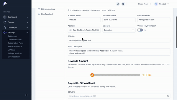 Today, we're thrilled to unveil a suite of new features, enabling businesses to seamlessly integrate robust, Bitcoin-infused loyalty and rewards programs directly into their Shopify, WooCommerce, or Square stores. These enhancements empower businesses, regardless of size, to not only bolster customer retention but, uniquely through Bitcoin, amplify customer acquisition as well. With our advanced loyalty system, businesses can effortlessly captivate their customers, rewarding them with Bitcoin on every purchase. Moreover, they join a global network of local businesses offering this unique reward with limitless potential.